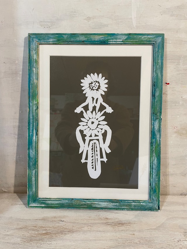 Ride on da life あるがままに人生ノリノリでいきましょ ********************* 絵を通して少しでも心落ち着くお手伝いが出来たら幸いです。 こちらは原画を複製した特製プリントをマット&木製フレームへ納めたオリジナル作品です。 プリントは原画を感じさせる特殊プリントです。作家本人が色校正して色調に拘り仕上げた特製プリントにシワやヨレが出ないように裏打ちシートを施してあります。 フレームは流木やビンテージを感じるペイントの質感に1点づつ手作業による仕上げを施しプリントを納めました。複製ではありますが1点づつ心を込めて仕上げておりますので大量生産では作れない質感をお楽しみください。付属するフレームは写真と異なる事がありますが作品に合わせて厳選した物を選び額装してお送り致します。 フレームサイズは238 x 186mmです。 お買い上げの方にはご希望があればフレームの裏面に宛名描きをマーカーにてドローイングを描き納品致します。ご購入の際に備考欄にてお申し付けください。 発送までにはご注文を受けてから3~4日を頂きます。 なるべく早い発送を心掛けておりますが離島故の自然災害や欠航などで到着が遅れる事もあります。何卒ご了承お願い致します。 送料は無料です。